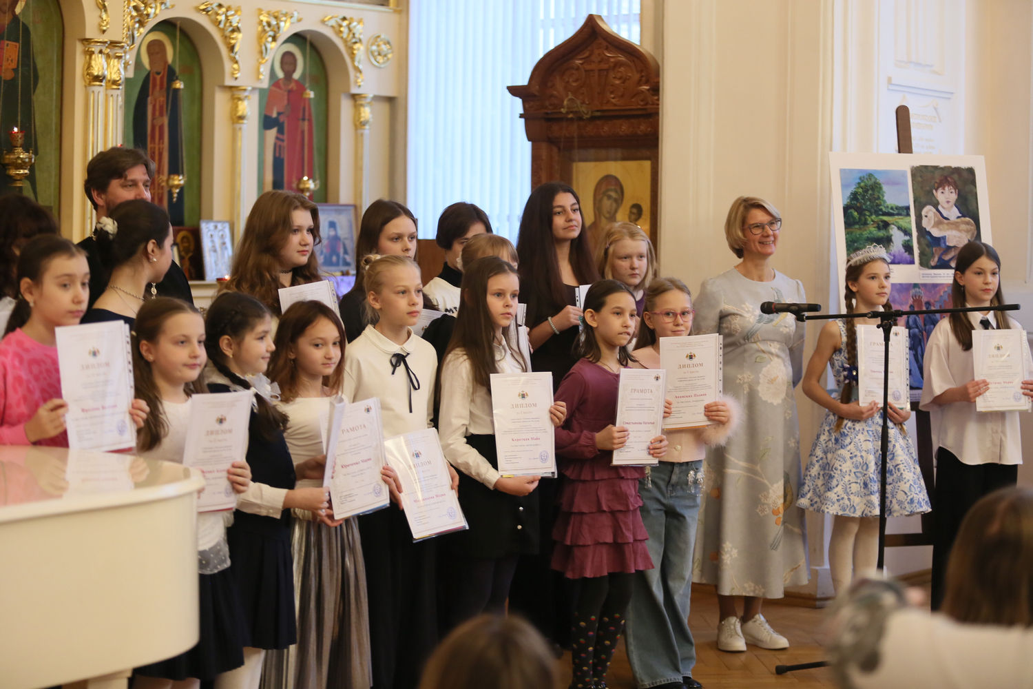 В субботу 29 ноября в рамках Викариатского этапа ХХХIV Международных Образовательных Рождественских Чтений прошло награждение победителей и призеров викариатского этапа Конкурса рисунков. Мероприятие прошло в Зале торжеств Российского университета транспорта (МИИТ). Работы учащихся нашей воскресной школы вызвали особые симпатии жюри, ребятам были торжественно вручены грамоты. Поздравляем Севастьянову Наталью, Истомину Анну и Истомина Ивана с успешным участием в конкурсе, желаем Божьей помощи и творческих успехов!