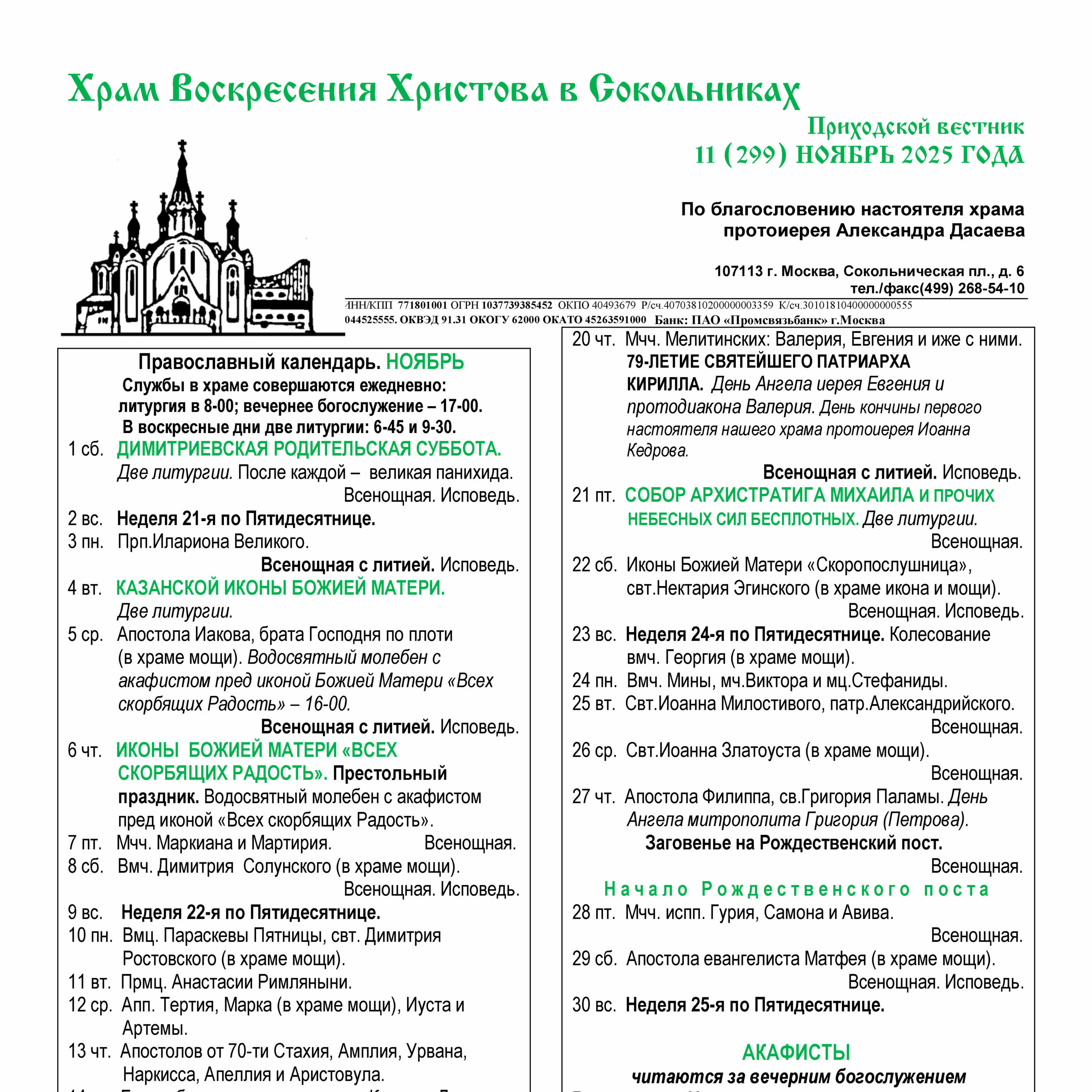 Дорогие братья и сестры, вышла электронная версия Приходского вестника за ноябрь 2025 года. Читать далее